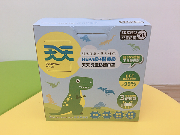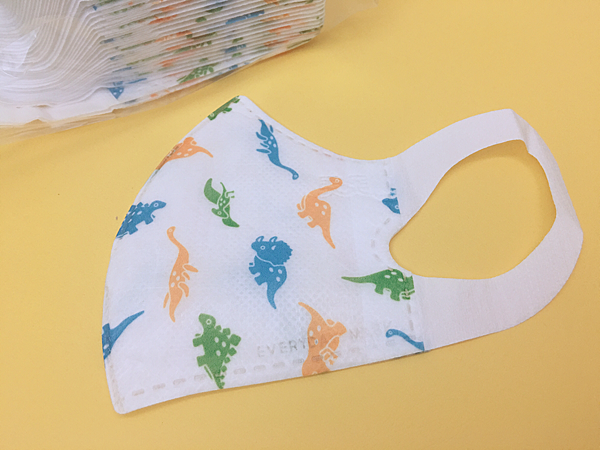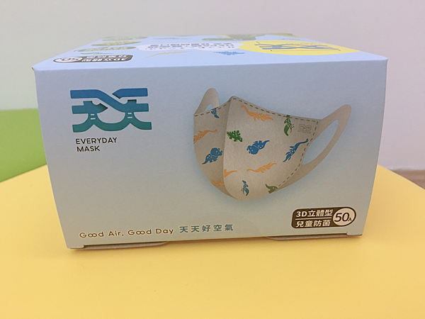 「兒童防護口罩」恐龍款從包裝就超級可愛~一盒有50入,也就是說,如果天天戴大概可以使用兩個月~