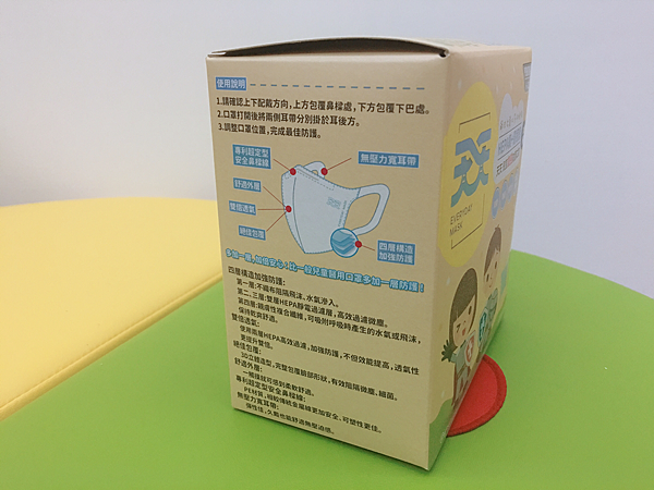 2.適合小孩臉型-大太或太小都不好,尤其不要使用成人口罩,除了不舒適外也較沒有防護效果。