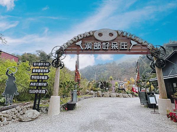溪部這個名字很有趣的與「西部」同音,所以莊園整體走一種美國西部牛仔風的設計~一看到這個拱門,就可以進入展開這次的露營旅程。