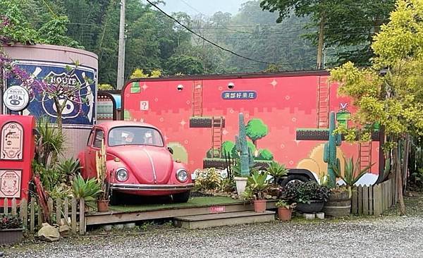 剛進來孩子們就開心瘋了~有一個加油站與紅色金龜車,金龜車裡面還有兩個好像要開去遠方度假的鴕鳥,這裡就是眾網美打卡的拍照熱點,可以先拍個五六七八張~(目前這區有稍微調整,以現場看到的造景為主唷)