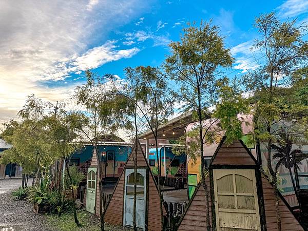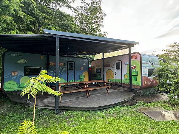 後區的部分,有別於前區更接近自然也更清幽,若是三五好友比較喜歡獨立空間與自然氛圍不被打擾,是個好選擇。馬車造型很特別,是像這樣一台一台。目前主要是給有帶寵物的大家入住。