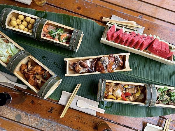 行程都結束後,就要來溪邊大餐了!舒服Chill 到不行的視野,竹製的器皿~我真的覺得$4XXX 全家這樣玩這樣住這樣吃,佛到不行!竟然還給我們週五週日旺日不加價,拜託搶到,之後還有沒有這種價位不知道啊啊啊