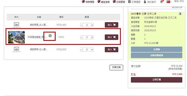 步驟一:先選兩天一夜或三天兩夜飯店方案
