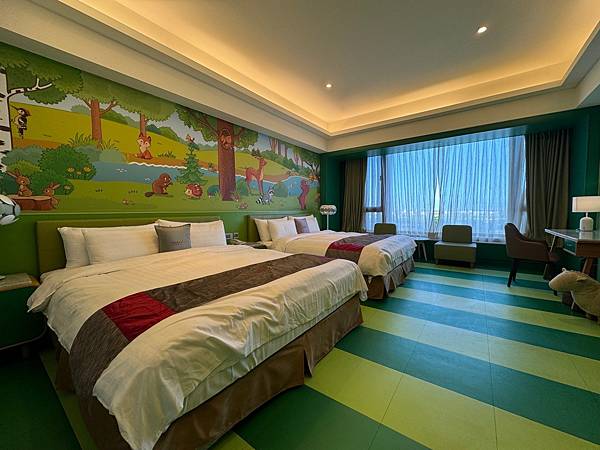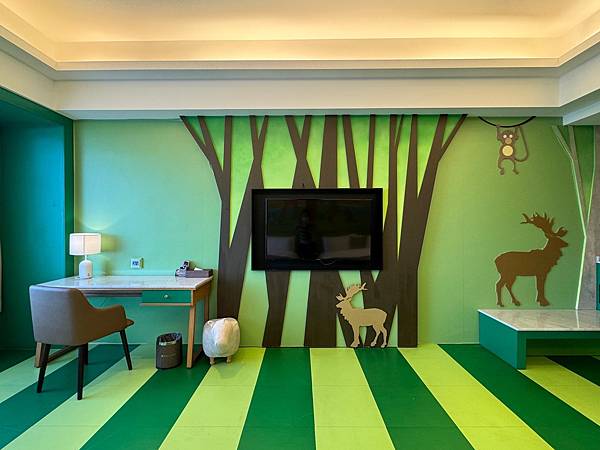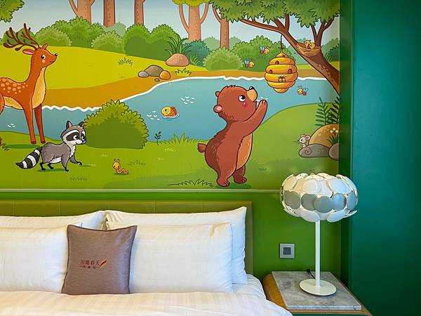 森林主題的房間很活潑可愛,有很多小動物出沒~