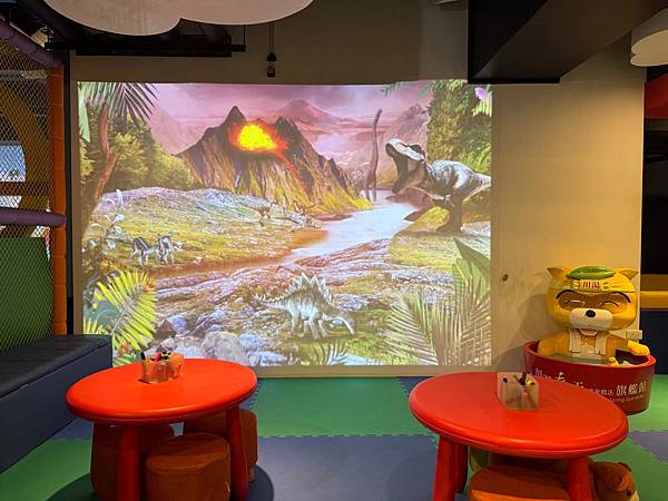 小畫家塗塗樂區域可以把孩子的創作,投影到螢幕上,變成生動的恐龍。