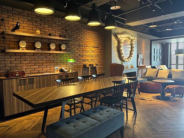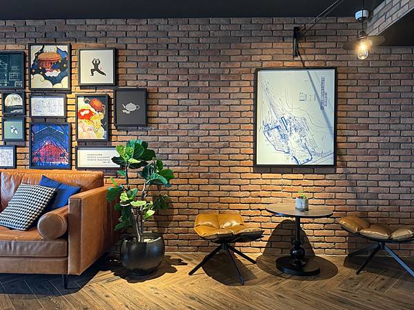 捷絲旅台南虎山館一進來就相當奪目時尚,雖然是以懷舊復古作為元素,但整體色調與設計反而注入一種現代的美感!屋頂的巨型鐵製漏斗、櫃台旁的太鼓、紅磚牆面與地板的拼接磁磚等等,極具特色。