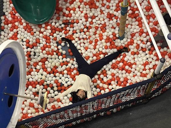 園區裡有很多適合大孩子的刺激遊戲,像是天堂上的鞦韆,糖晶落體,飛天宅急便,煙囪溜滑梯等等,但因為我家都還很算小,就先衝來這個市內遊戲室~光是這裡我們就玩2小時,小孩根本不走~