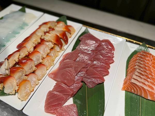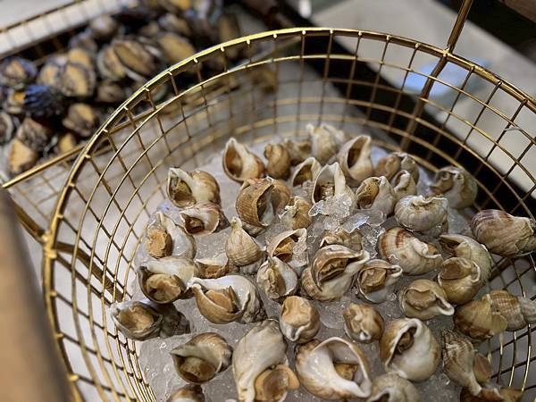 海鮮區有螺肉、帶殼鮑魚、鮮蝦、生魚片等等。