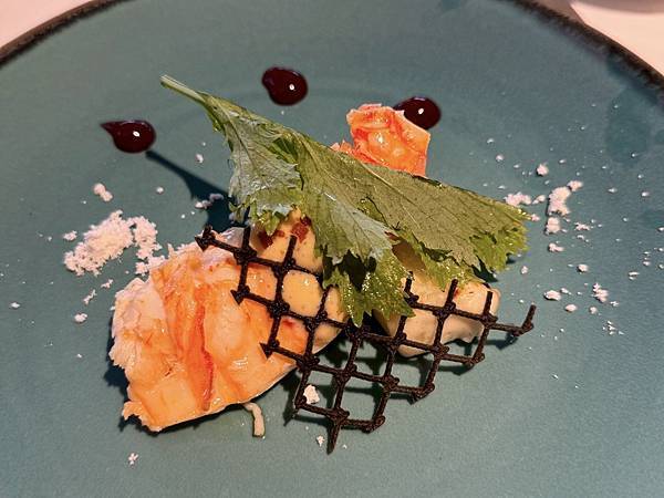 另一道主菜奴爸有點,是澳洲龍蝦佐烏魚子海膽乳沫佐香煎鮭魚,又是新鮮美味。