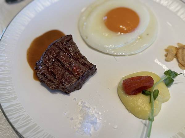 我點的主餐是極黑和牛菲力,這個號稱比日本和牛還貴還好吃的牛排,口感厚實又嫩,擺盤也好美。
